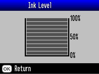 You see a screen showing the approximate ink level in your photo cartridge. Press OK to close the screen.