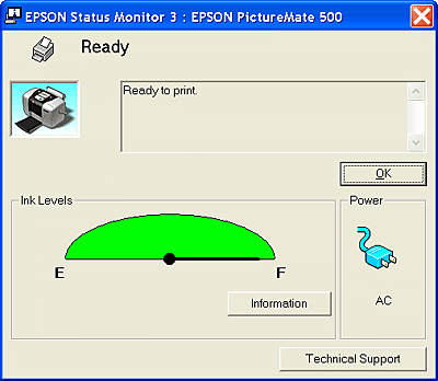 Click the EPSON StatusMonitor button. The EPSON StatusMonitor dialog box appears.