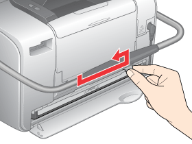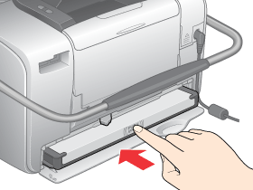 After installing the cartridge, make sure the sides of the cartridge are even. If either side of the cartridge sticks out, push the side of the cartridge until it clicks.