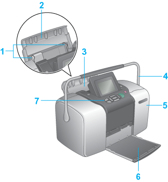 1. Edge guides: Help load the paper straight. Adjust the left edge guide to fit the width of your paper.