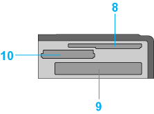 10. Memory Stick/Memory Stick PRO/SD/MultiMediaCard memory card slot: Use to load the Memory Stick, Memory Stick PRO, Memory Stick Duo, Memory Stick PRO Duo, MagicGate Memory Stick, MagicGate Memory Stick Duo, SD, miniSD Card and MultiMediaCard.