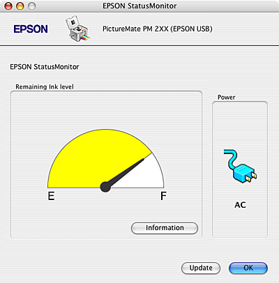 If the photo cartridge installed in the printer is broken, incompatible with the printer model, or improperly installed, EPSON StatusMonitor will not display an accurate status of the photo cartridge. Be sure to replace or reinstall the photo cartridge.