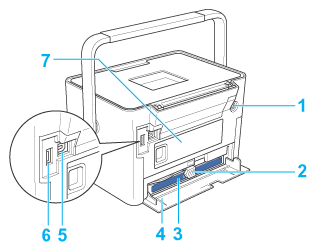 6. EXT. I/F (USB) port: Used to connect the optional Bluetooth Photo Print Adapter and digital cameras that have PictBridge or USB DIRECT-PRINT functionality, to the printer.