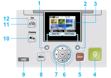 With the exception of the Cancel button, the Open button, and the On button, the control panel buttons are used only with direct printing from a memory card or a digital camera.