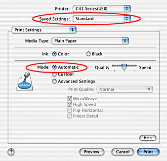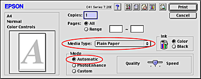 Select Plain Paper as the Media Type setting and Automatic as the Mode setting.