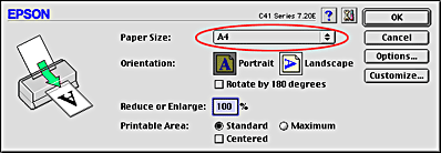 Select A4 as the Paper Size setting. Then, click OK to close the dialog box.