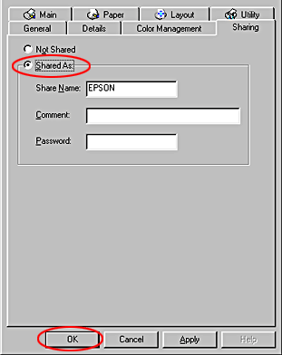To share a printer with other computers on a network, follow the steps below for configuring the computer to which the printer is connected.