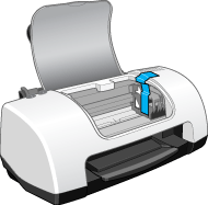 | Open the printer cover and make sure that the print head is in the home (far right) position. If not, turn on the printer and wait until the print head returns to the home position. Close the printer cover, and then turn off and unplug the printer. |