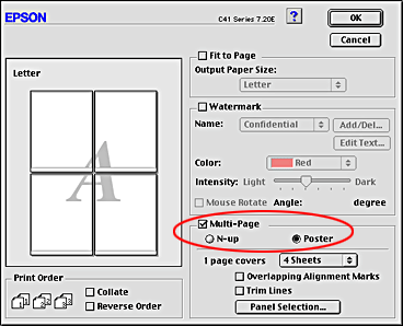 | Select the Multi-Page check box on the Layout menu. Then, select the Poster. |