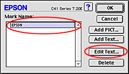 | The image file name or the watermark text appears in the Mark Name list in the Watermark dialog box. To change the name of an image watermark, select it from the list, and then type a new name. When a text watermark is selected in the Name list, you can edit the text or change the font and text style by clicking Edit Text. |