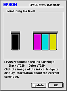 You can check the amount of ink remaining in the ink cartridges using EPSON Status Monitor 3 or the Progress Meter. Refer to the appropriate section below for details.