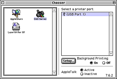 Choose Chooser from the Apple menu and click the icon for your printer. Then, select the port to which the printer is connected.