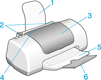 3. Printer cover: Covers the printing mechanism. Open only when installing or replacing ink cartridges.