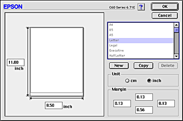 If the appropriate paper size is not included in the Paper Size list in the Page Setup dialog box, follow the steps below to define a new custom paper size.