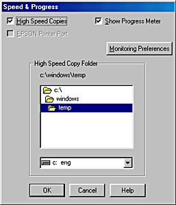 Windows users can make certain print speed settings in the Speed & Progress dialog box. Click the Speed & Progress button on your printer software's Utility menu. The following dialog box appears.
