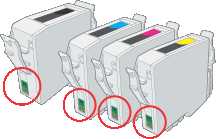 Do not touch the green IC chip on the side of the cartridge. This can damage the ink cartridge.