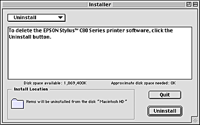 Select Uninstall from the pull-down menu at the top left, then click Uninstall.