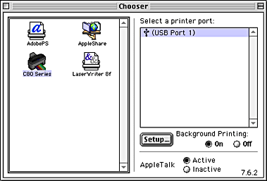 Choose Chooser from the Apple menu. Then, click the appropriate printer icon and select the printer port that you want to use from the Select a printer port list.