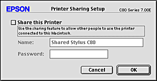 Select the Share this Printer check box, then type the printer name and password information as necessary.