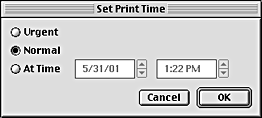 If you select At Time, use the arrows beside the date and time boxes to specify the date and time that you want to print the document.
