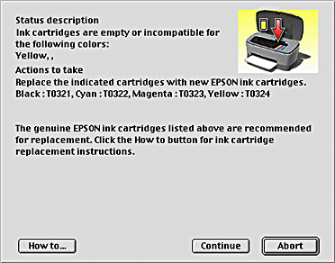When the ink runs low or out, a How to button appears. Click How to and EPSON StatusMonitor will lead you step-by-step through the ink cartridge replacement procedure.