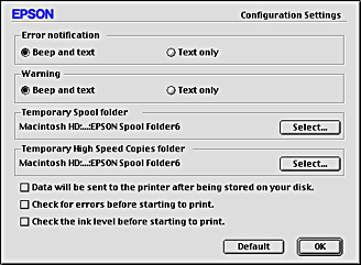 Choose the method by which EPSON StatusMonitor will notify you in case of an error. |