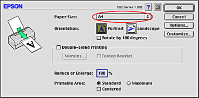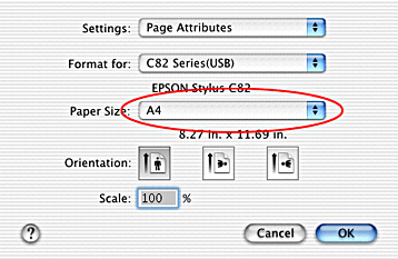 Select A4 as the Paper Size setting. Then, click OK to close the dialog box.