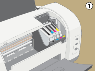 Be sure to always install an ink cartridge into the printer immediately after removing an old ink cartridge. If the ink cartridge is not installed promptly, the print head may dry out, rendering it unable to print.