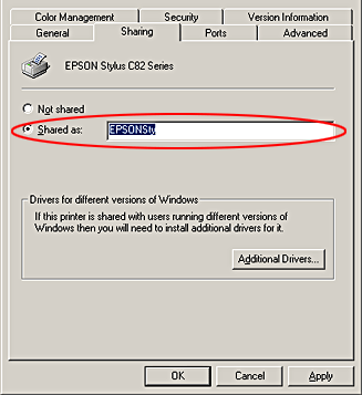 Select Shared as (for users of Windows NT 4.0, select Shared), and then type a name for the shared printer.