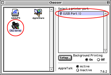 Choose Chooser from the Apple menu, click the icon for your printer, then select the port to which the printer is connected.