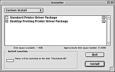 Choose Custom Install in the Installer dialog box, and select the Desktop Printing Printer Driver Package check box.