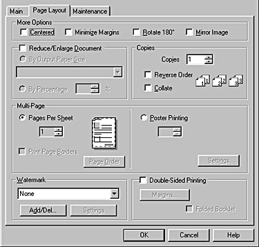 Under Multi-Page you can choose between Pages Per Sheet and Poster Printing. Refer to the appropriate section below.