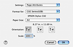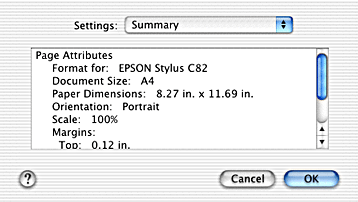 Select Page Attributes or Summary. When Page Attributes is selected, the page setting items will be displayed. When Summary is selected, a list of the current settings will be displayed. For more information on Summary, see Showing the current settings in the Page Setup dialog box.