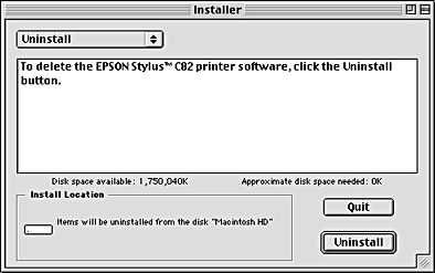 Select Uninstall from the pull-down menu at the top left, and then click Uninstall.