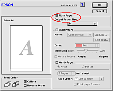 You can use the Fit to Page printing function when you want to print, for example, an A4 size document on another size paper.
