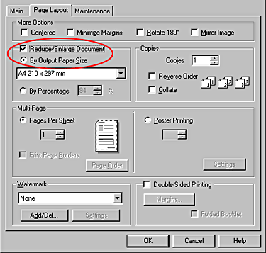 Under By Output Paper Size on the Page Layout menu (Windows), select the paper size that you loaded in your printer.