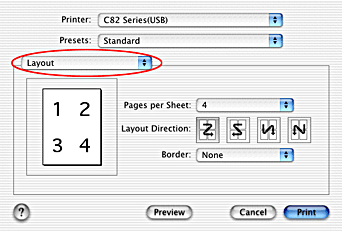 For Macintosh, select the Multi-Page check box in the Layout dialog box, and then select N-up.