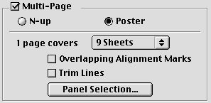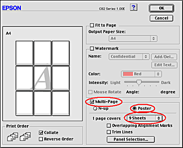 Specifies how many printed sheets of paper the enlarged document page is to cover. You can choose from 4, 9, or 16 sheets. |