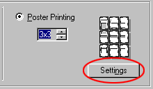 | Click the Settings button to adjust the way your poster will print. The Poster Settings dialog box opens. |