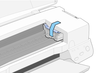 | Open the printer cover and make sure that the print head is in the home (far right) position. If not, turn on the printer and wait until the print head returns to the home position. Turn off the printer and then close the printer cover. |