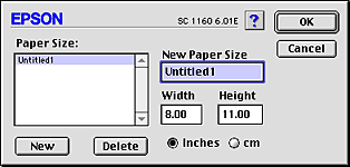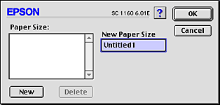 | To define a new paper size, click New. The dialog box updates to allow you to enter a name for the new size. |