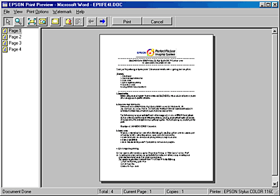 After you have previewed the document, click Print to print the document, or click Cancel to cancel printing.