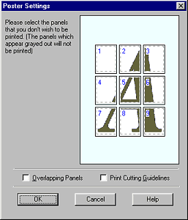 If you only want to print a few of the panels without printing the entire poster, click the panels you don't wish to print, then click OK to close the Poster Settings dialog box.