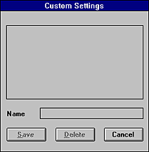 To save your Advanced settings, click Save Settings in the Advanced dialog box. The Custom Settings dialog box appears.