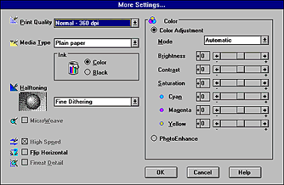 | PhotoEnhance setting is available only for Windows 95, 98 and NT 4.0 users. |