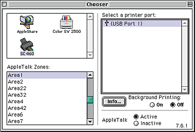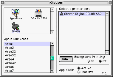 On each computer from which you want to access the printer, choose Chooser from the Apple menu. Then click your printer's icon and select the printer port you want to use from the Select a printer port box on the right. You can only select from the printers connected to your current AppleTalk zone.