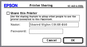Select the Share this Printer check box, then type the printer name and password information as needed.