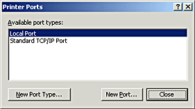 In the Printer Ports dialog box, select Local Port, then click New Port.