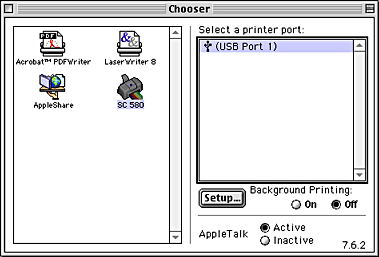 Choose Chooser from the Apple menu. Then, click the appropriate printer icon and select the printer port that you want to use from the Select a printer port list.