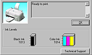 EPSON Status Monitor 3 provides a graphic display of the amount of ink remaining. For the color ink cartridge, the chamber with the least amount of ink remaining determines the level that is displayed for all the colors in the cartridge.